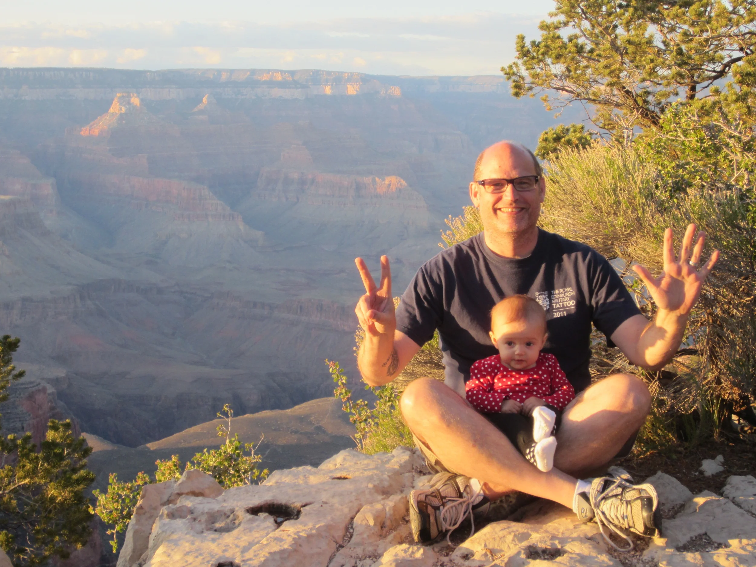 Gwen turned 7 months during our trip to the Grand Canyon. She is an easy going girl, likes to watch what others do and is giggling a lot. She is not sleeping well yet. She likes to eat veggies and fruits, and is taking more finger foods and seems to like this.
