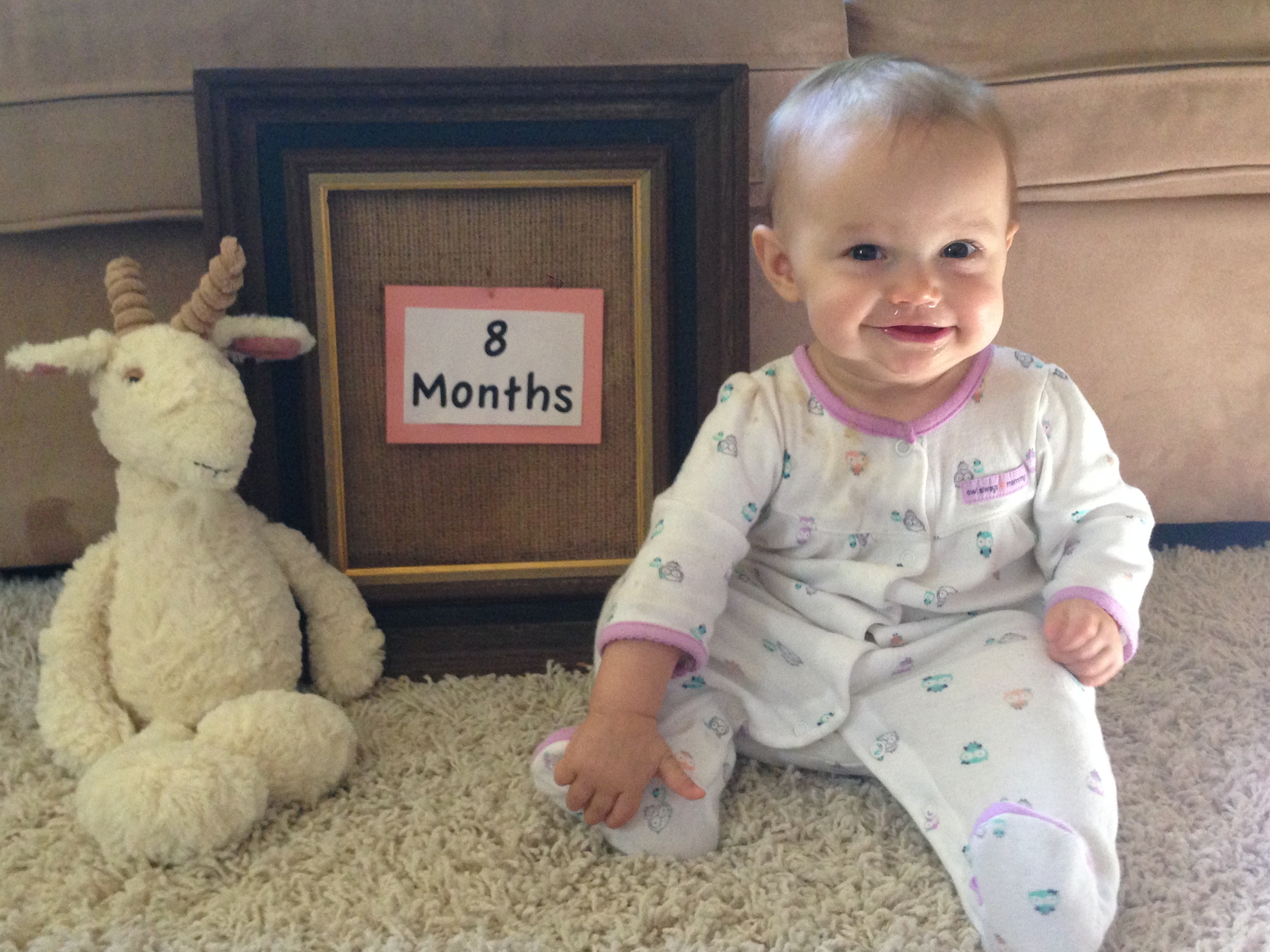 Gwen turned 8 months in June and is a happy little babe! She is sleeping SO much better and we are all relieved. She is sitting up on her own so well, a change that came just after she turned 7 months. She eating a lot more foods, tolerating and liking peanut butter, and insists on feeding herself most of the time. She is blowing raspberries A LOT and becoming very vocal. No clear words yet though. We think she'll be crawling pretty soon as she is making circles while sitting and ends up in places we didn't see her last! She has been camping 3 times so far, on lots of road trips and is a champ!